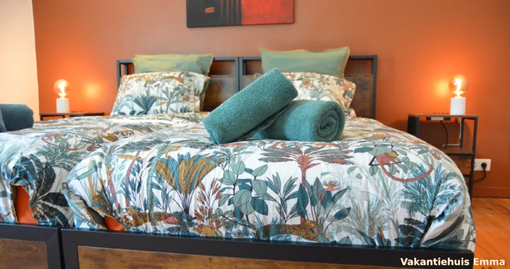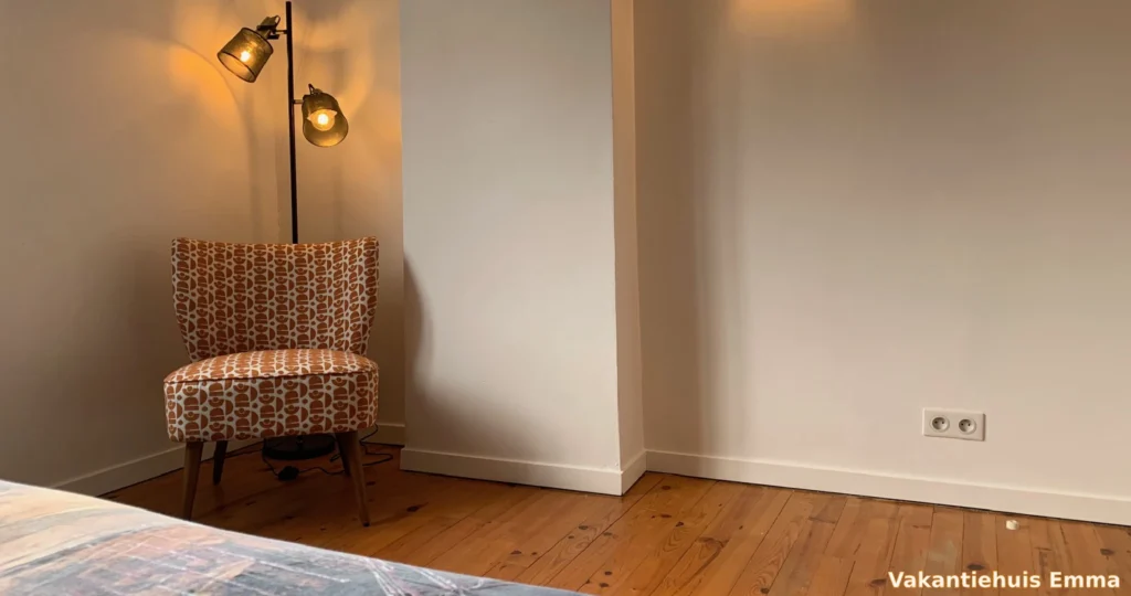 De slaapkamer is voorzien van twee comfortabele eenpersoonsbedden van 90×200 cm, ideaal voor gasten die apart willen slapen of voor kinderen. Beide bedden zijn uitgerust met hybride kwaliteitsmatrassen en fris beddengoed, wat zorgt voor een goede nachtrust. De ruimte is smaakvol ingericht, met een focus op eenvoud en comfort, waardoor het een aangename plek is om te ontspannen. De kamer heeft een rustige en uitnodigende sfeer, perfect om tot rust te komen na een actieve dag. De inrichting zorgt voor een gezellige en huiselijke ambiance, waardoor deze slaapkamer een ideale plek is voor een ontspannen verblijf.